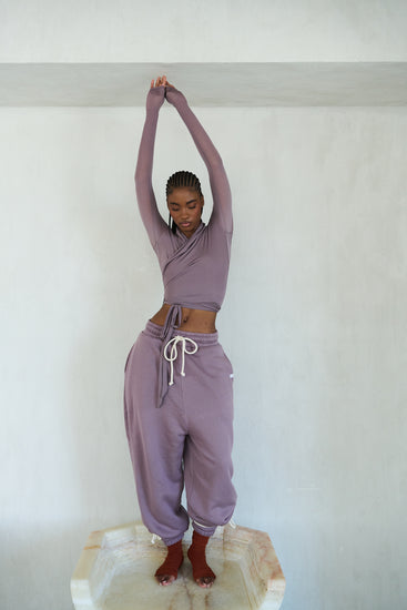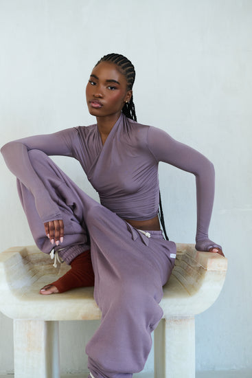 SOFT SHIMMER WRAP TOP // AMETHYST